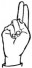 На ћирилици написано УНА БАДРИЋ састоји се из 9 слова [?]. Исписано ћириличном једноручном азбуком за глувонеме: